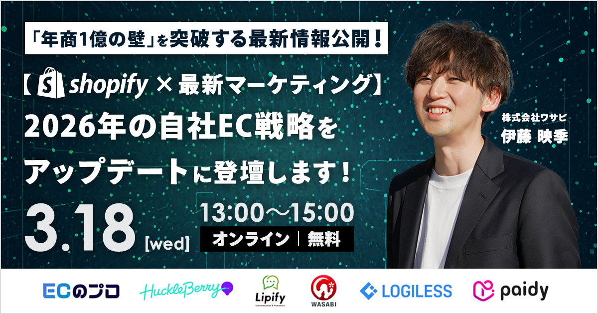 2026年3月18日(水)に開催される「【Shopify×最新マーケティング】2026年の自社EC戦略をアップデート」にて、弊社社員の伊藤が参加いたします。